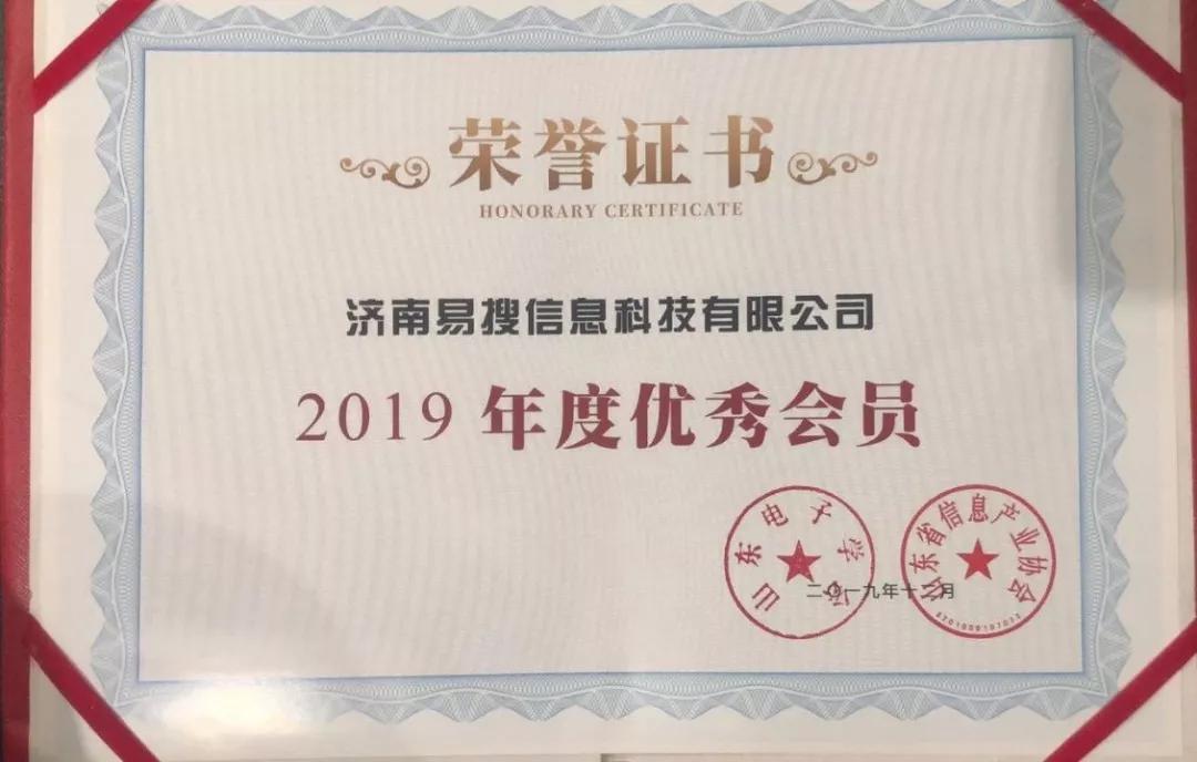 在会上针对2019年度学会先进工作者、优秀会员单位等奖项进行了隆重的颁奖仪式。易搜集团作为山东省电子学会常务理事单位,荣获“2019年度优秀会员”奖。