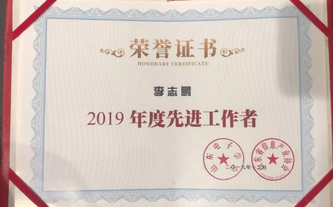 山东电子学会易搜集团会员代表李志鹏荣获“2019年度先进工作者”奖项。