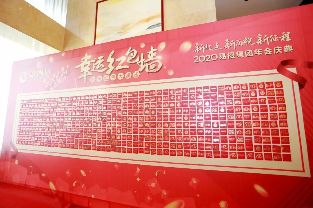 年会开始之前,集团为每一位员工准备了一份拥有美好寓意的红包,把它们贴满了墙面。希望大家新的一年,有钱、有福、有爱也有陪伴。